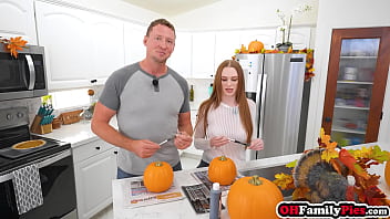Redhead big tits teen Harley Love fucks her stepdad after pumpkin work
