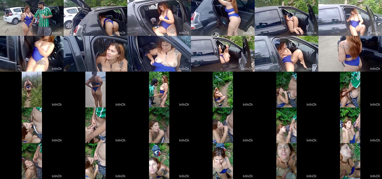Redhead in the woods with her husband finds a guy to suck and get milk on his face
